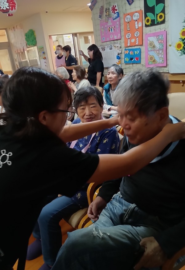 音楽を楽しんだ後は子どもたちが作ってきてくれたメダルを直接首にかけていただきました(^^♪