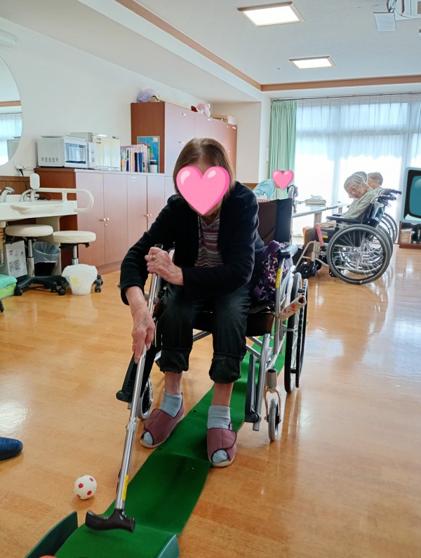 こちらすこや家の定番レクリェーションの一つ!!杖ゴルフ!!
