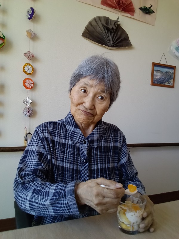 お祝いした後はおやつにスタッフ手作りのフルーツパフェをご提供させていただきました!