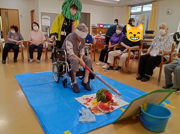今回は、千本引き、ヨーヨー釣り、すいか割りをしつつ、
