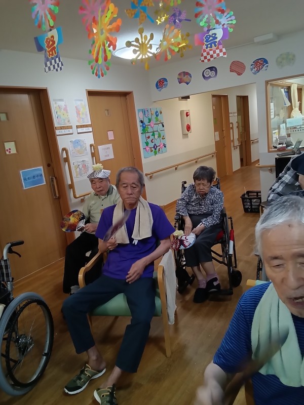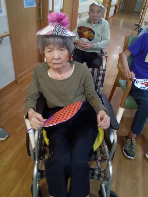 自作の笠や団扇を使って東京音頭と花笠音頭を踊りました。