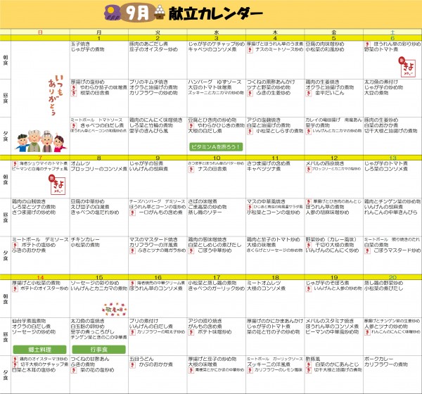 9月献立表【後半】
