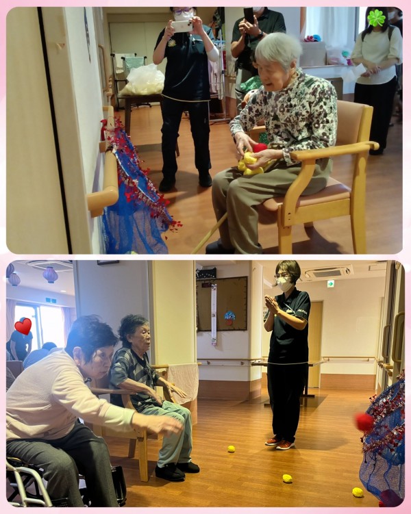 スイカ割りと、金魚すくい 輪投げを楽しまれた後は玉入れも行いました☆