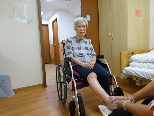 お顔と足のマッサージをされています。