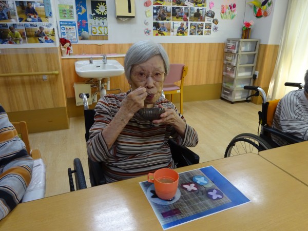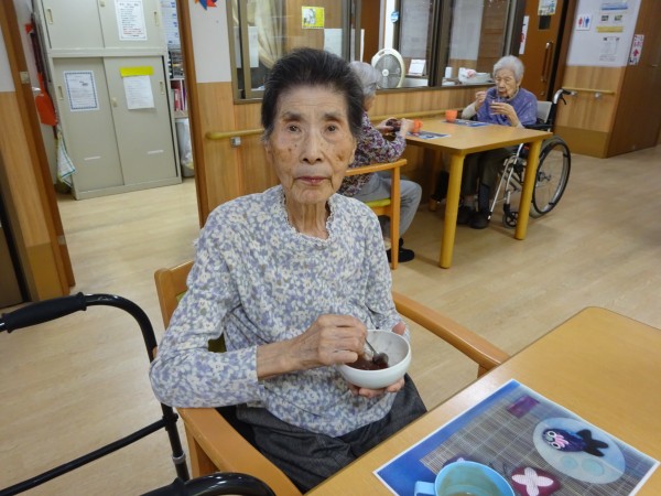 この日は冷たい小豆ゼリーとあったかいコーヒーミルクを召し上がっていただきました。