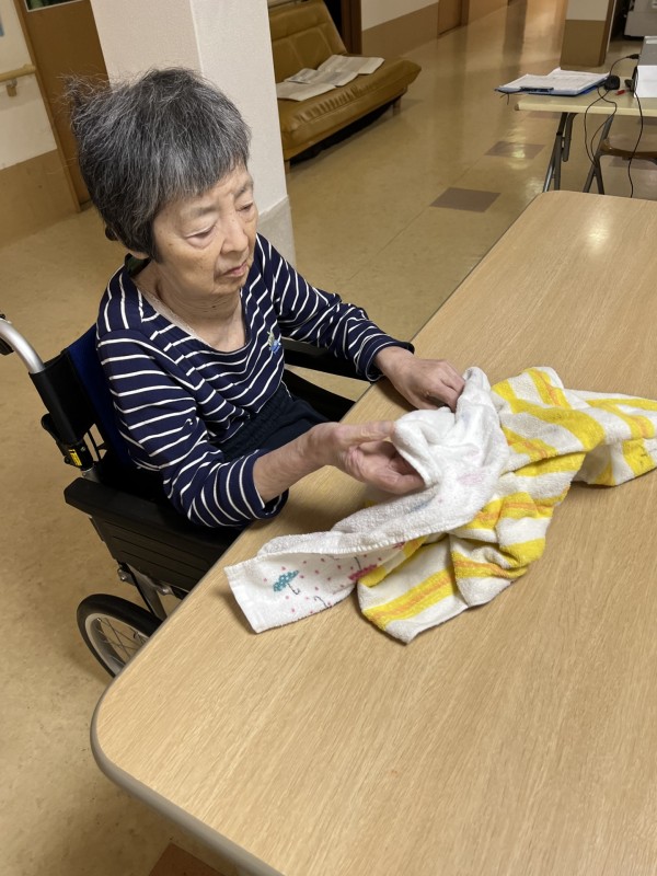 今回は1階の皆さんに洗濯物たたみのお手伝いをしていただきましたので、そのご様子をご覧ください。