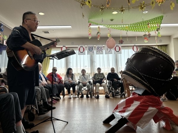お祭りの最後はホーム長のギターによる「大合唱」です♪