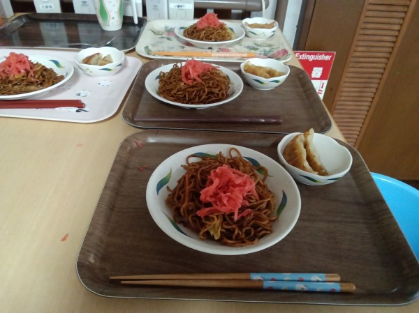 今回は昼食に焼きそばを召し上がっていただきました。ご利用者様からは、「夏祭りの思い出が懐かしいわあ(#^^#)」
