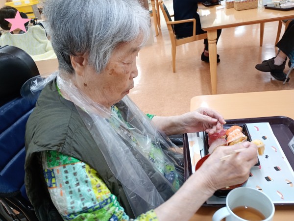 『お寿司久しぶりに食べる!』と入居者様、召し上がる前から楽しみにされていました!!