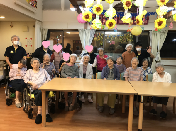 入居者の方々は、デイサービスのフロアを借りての花火鑑賞です(^^♪