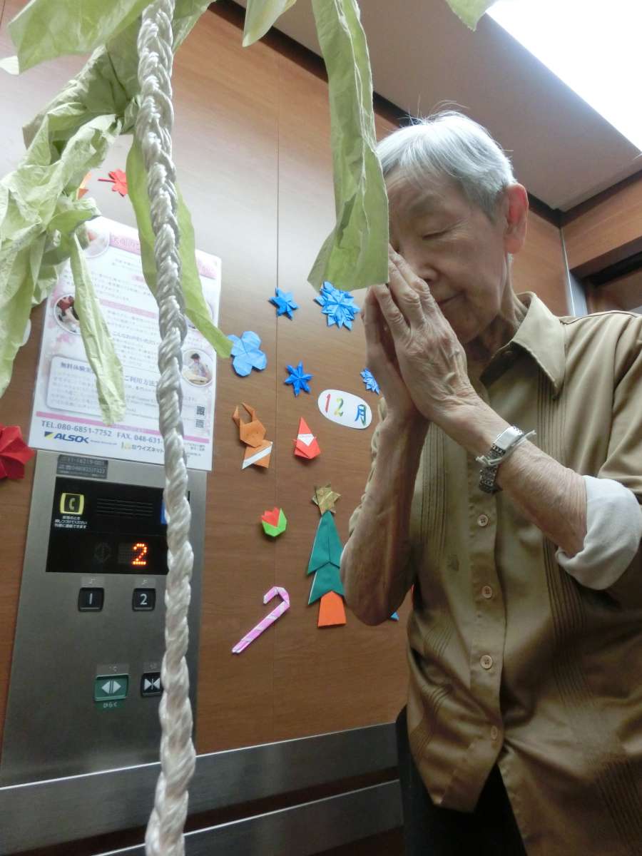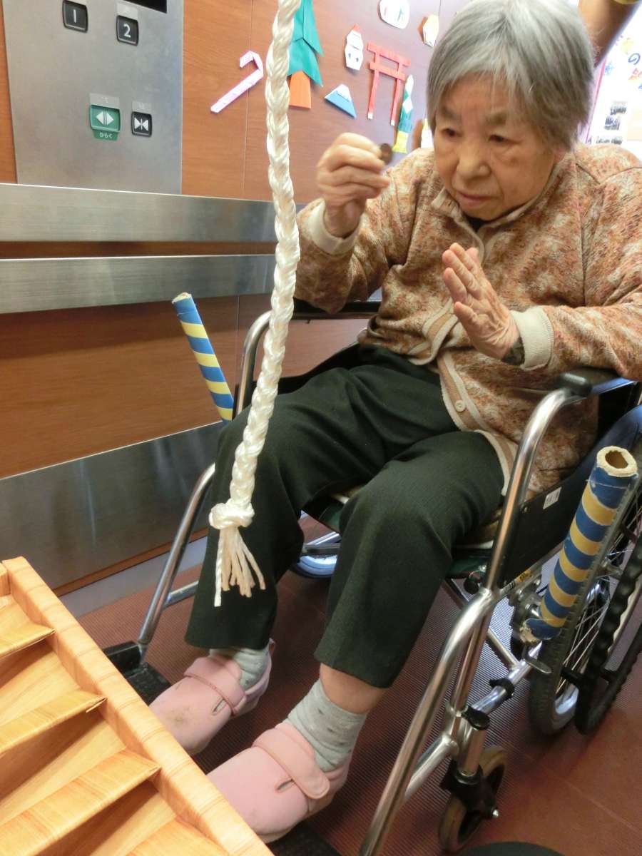 参拝の作法が完璧な入居者様もいらっしゃり、たまたまお正月にお越しになられたご家族様も入居者様と一緒に参拝されました。