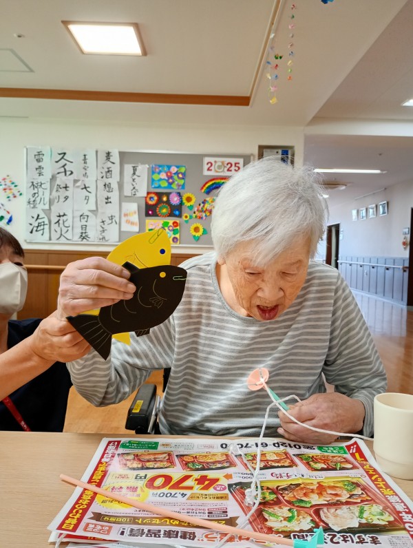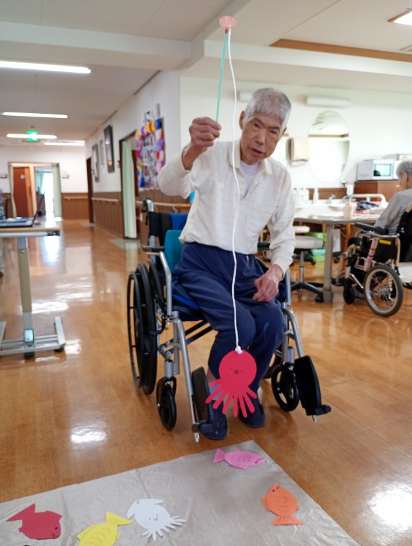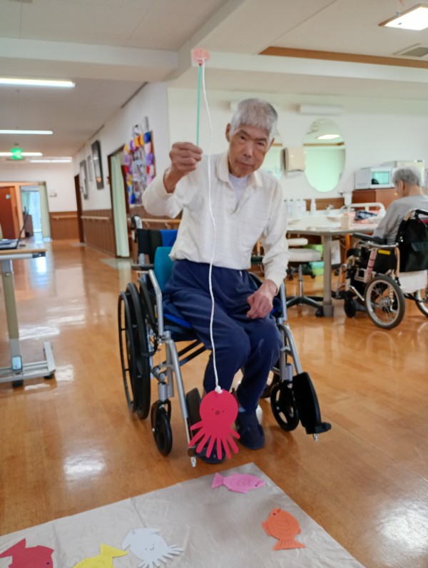 こちらの手作り魚釣り!!前回は3階のご利用者様に楽しんでもらいましたので、