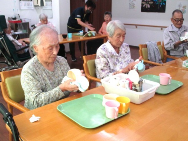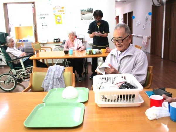 お茶碗拭きをして下さっているご様子です( ^ω^)・・・ みなさんで微笑ましく拭いて下さっています(^0_0^)