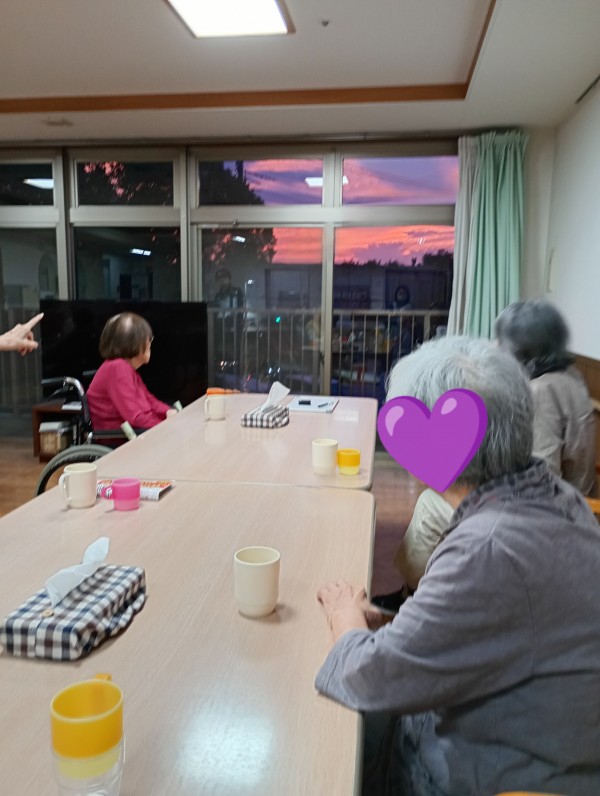 今日は夕焼けがと~~~ってもキレイだったので皆さんと一緒に食堂から観賞していました。