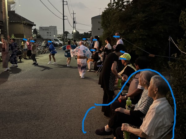 皆さんの熱気と迫力に圧倒されてしまい、只々踊りに魅入る他ない、やなか代表の二人。お土産にお茶を頂き帰宅。来年は皆さんが腰を抜かすような踊りで、現場をジャックしてくれるのを期待していますよ!