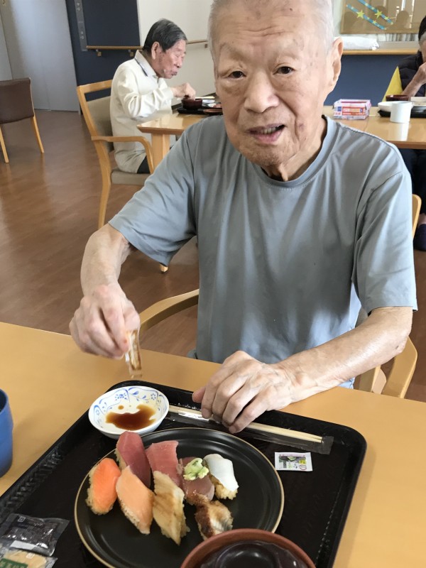 ご希望者にお寿司を提供しました。皆さま、とんでもなく『いい笑顔』です。