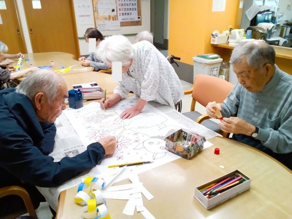最近ご入居者様がはまっているもの、それは『塗り絵』と『ちぎり絵』です!!