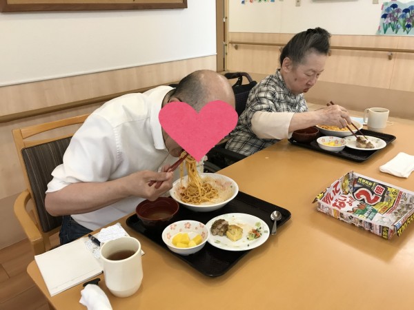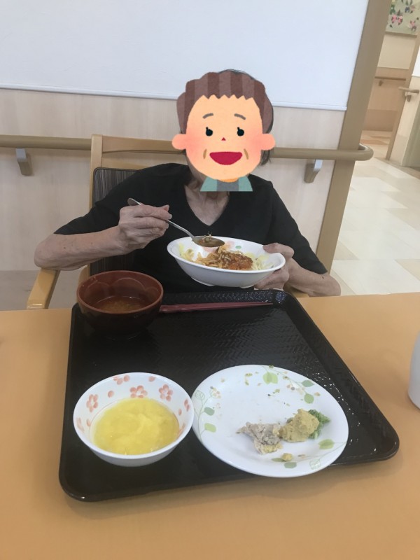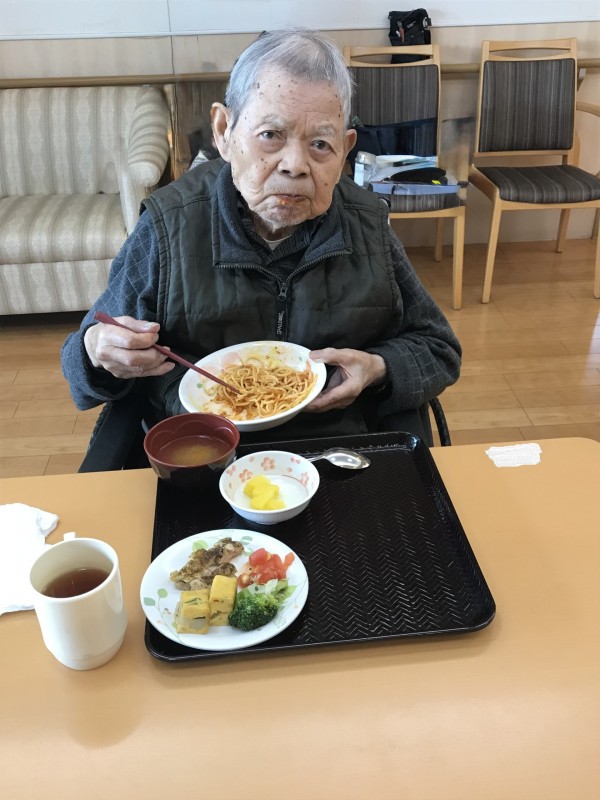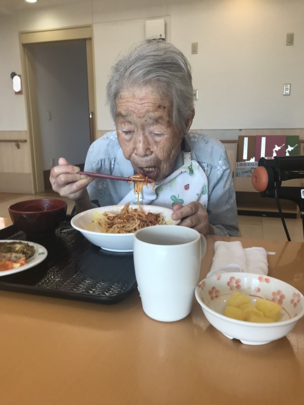 普段の献立にはないミートソーススパゲティを召し上がっていました(*^▽^*)