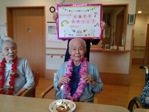 今回は3人いらっしゃったのですが、そのうちのお2人は入居されて初めてのお誕生日だったので、お2人とも喜んで下さいました(*^^*)