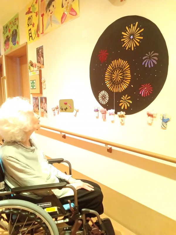 また廊下やお部屋の壁にはケアスタッフ特製の折り紙で作られた四季折々の飾りや