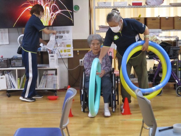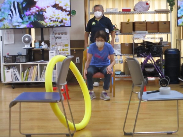 「椅子と椅子の間を通すのが難しい!」と皆様真剣な表情。思ったより曲がったり、惜しくも外れてしまったりと、歓声と笑い声がたえませんでした。