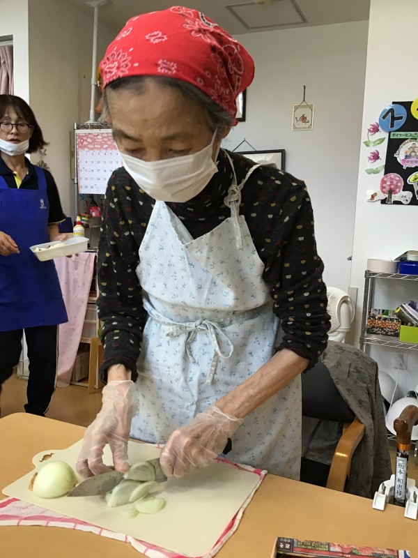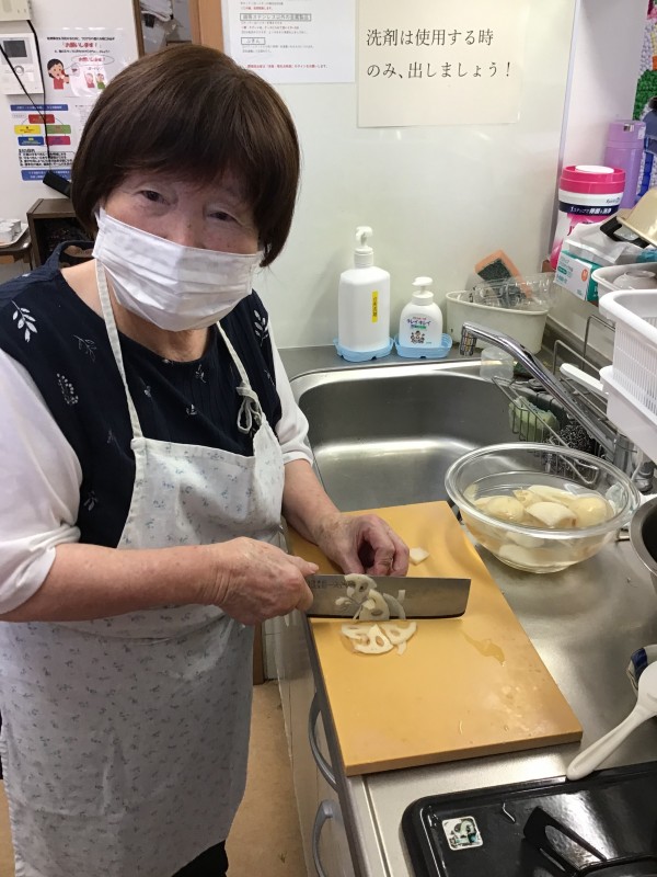 手際よく切って下さるので、スタッフは見守りだけです♪とても頼りになるご利用者様です(*^^*)