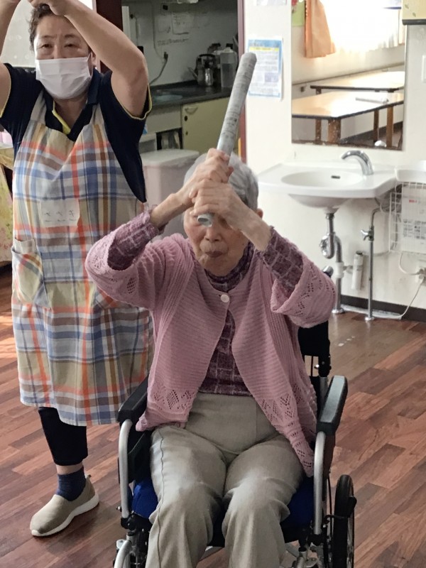 皆さん童心に帰って「新聞で作った刀!」を振り回して楽しそうに大きい声(ヤー!)をあげて頑張っておられました(^o^)丿