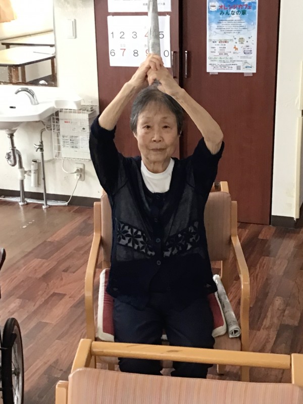 いつもはリズム体操や口腔ヨガ等、やり慣れた体操でしたが、今回は【殺陣(たて)体操】を行いました。
