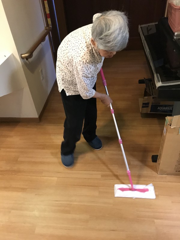 スタッフが腰を気遣うと「大丈夫、大好きだから」や「痛くなったら止めるから」と一生懸命フロアを綺麗にして下さいます。