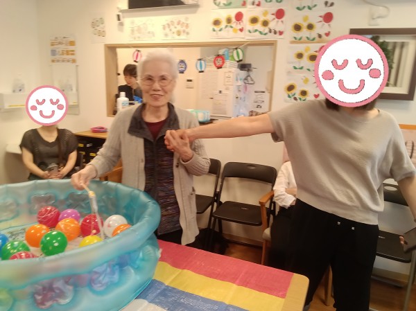 遅ればせながら今年99歳のI様もヨーヨつりに参加!