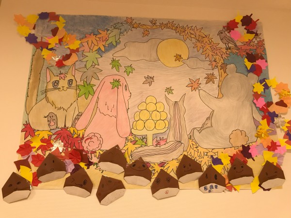 秋の壁画作りの続きでーす☆
