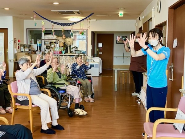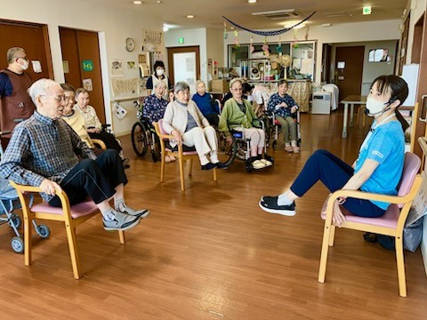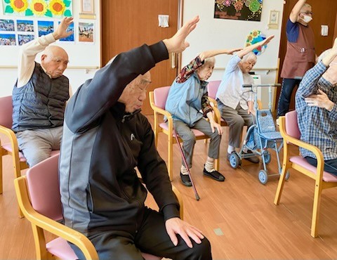 1F利用者様も集合して、2Fにて体操の