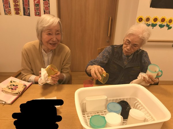 と話し合いながらテキパキと食器を拭いて下さるY様とK様