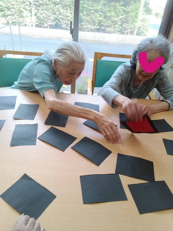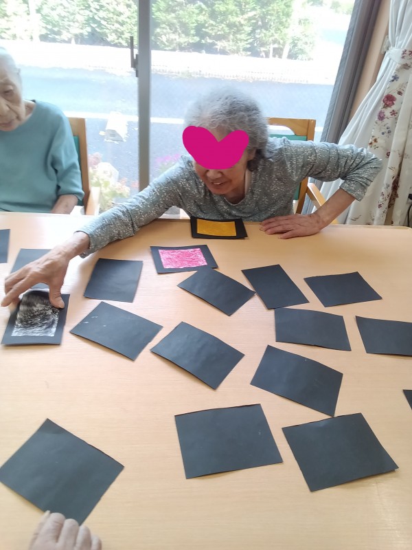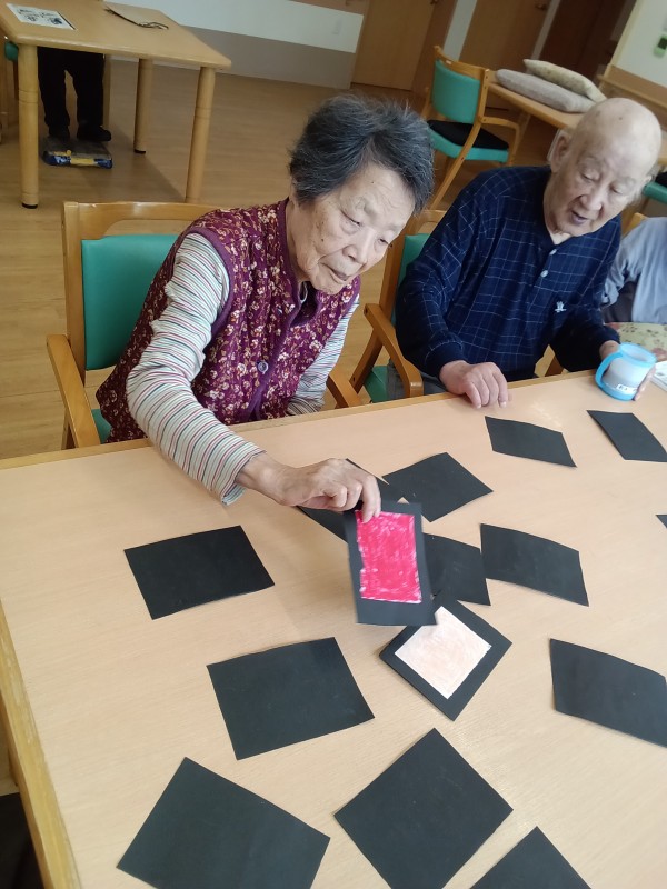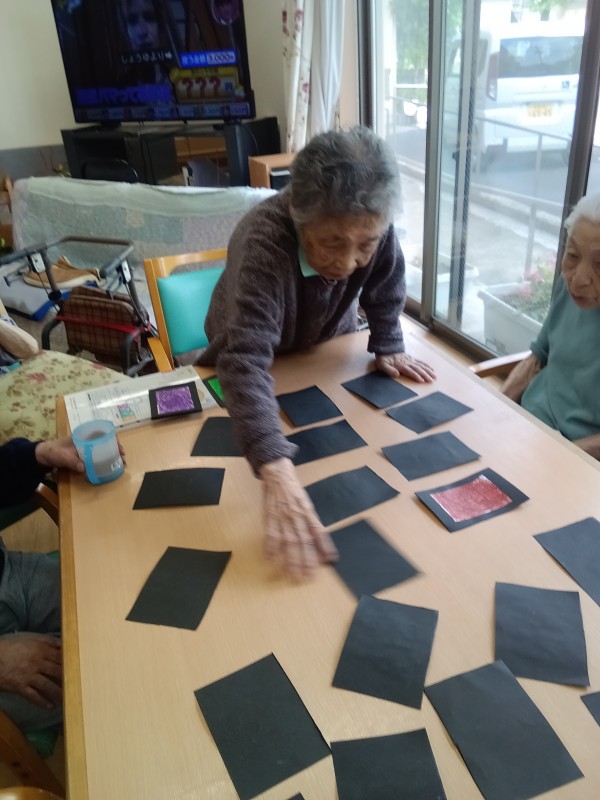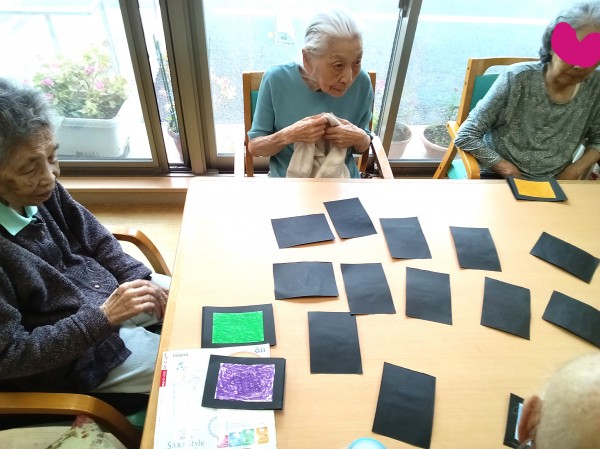 トランプだと少々難しいので職員が色別のカードを作ってくれました。