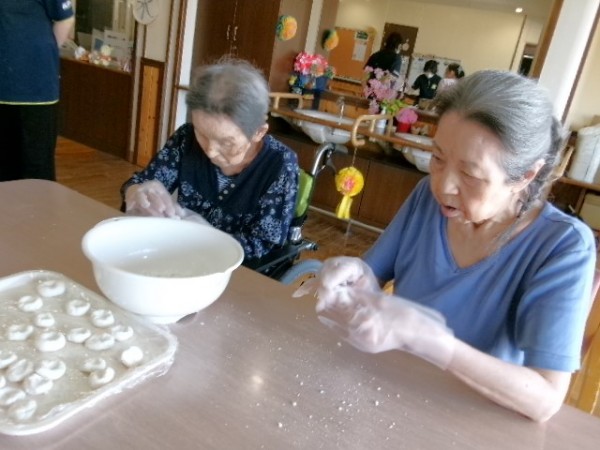まずはスタッフが、耳たぶくらいまで捏ねた白玉を、皆様に量産していただきました。