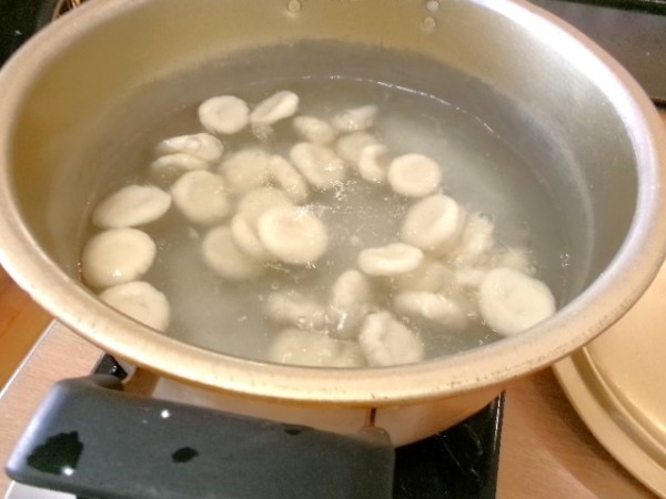 沸騰した鍋に、くっつかないように注意しながら白玉をイン!