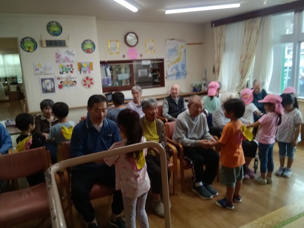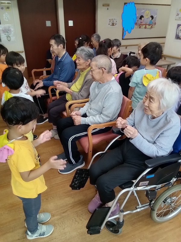 ご利用者様、園児たちと一緒に手遊び歌を楽しまれました♪