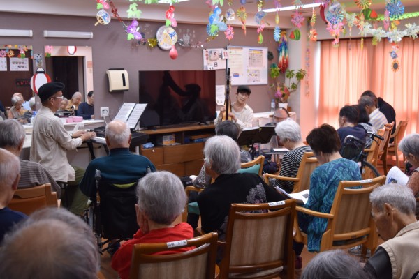 ミニハープとキーボード、ホーム長のギターで皆様と合唱しました♪