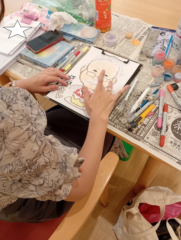 絵描きさんのご厚意で毎月アミカの郷亀有に似顔絵を描きに来てくださるとのこと♪
