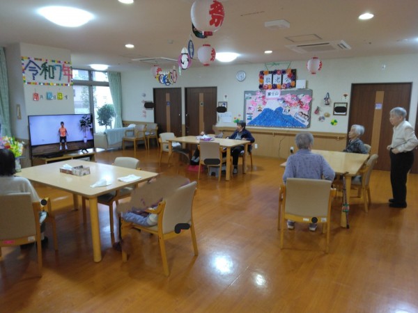 毎日、午前中、午後1回ずつ体操を全員で行っています。