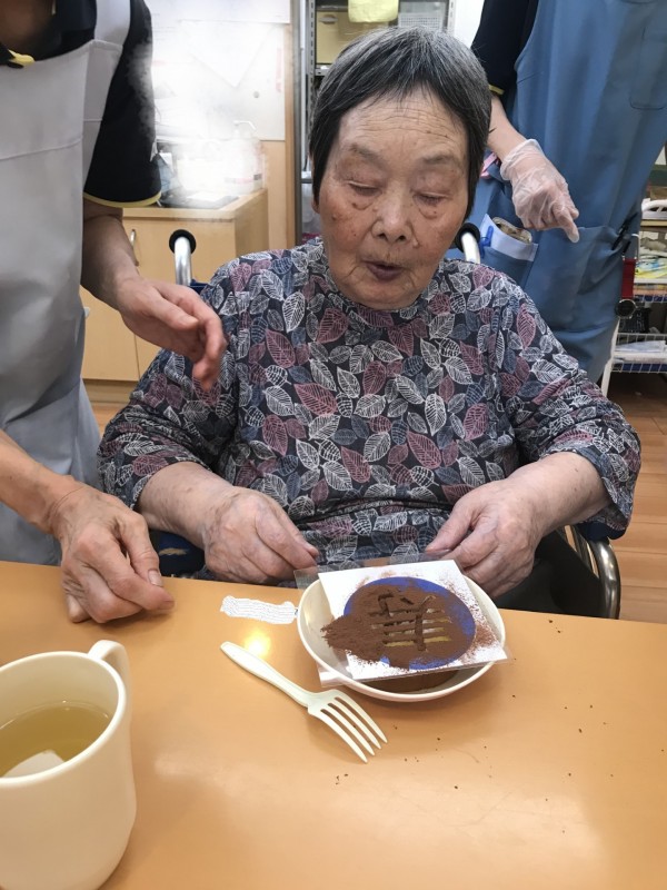 2階の皆様もほとんどの方たちが自分でココアを振り「寿」を完成させていて、綺麗な「寿」ができた時の嬉しそうな表情が印象的でした!