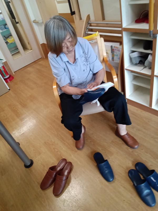 先日、ご利用者様と環境美化の一環で来客用のスリッパを綺麗に拭きあげました。
