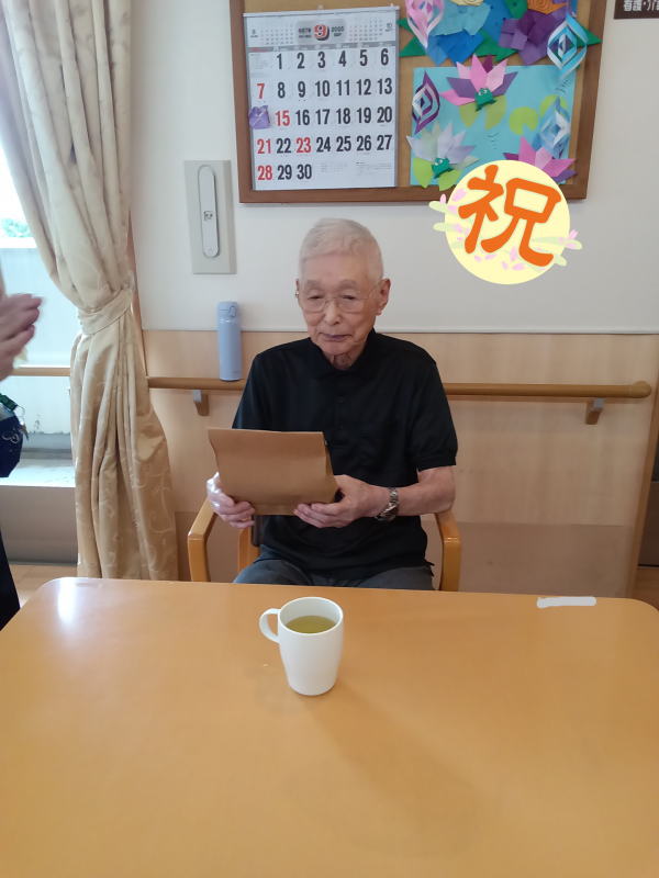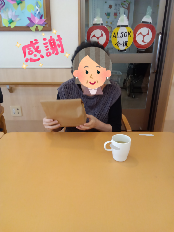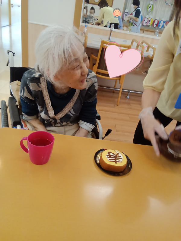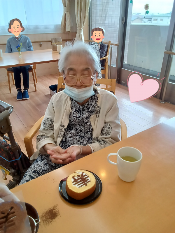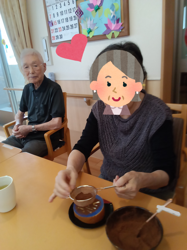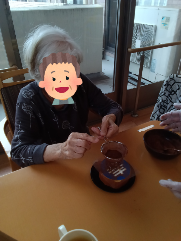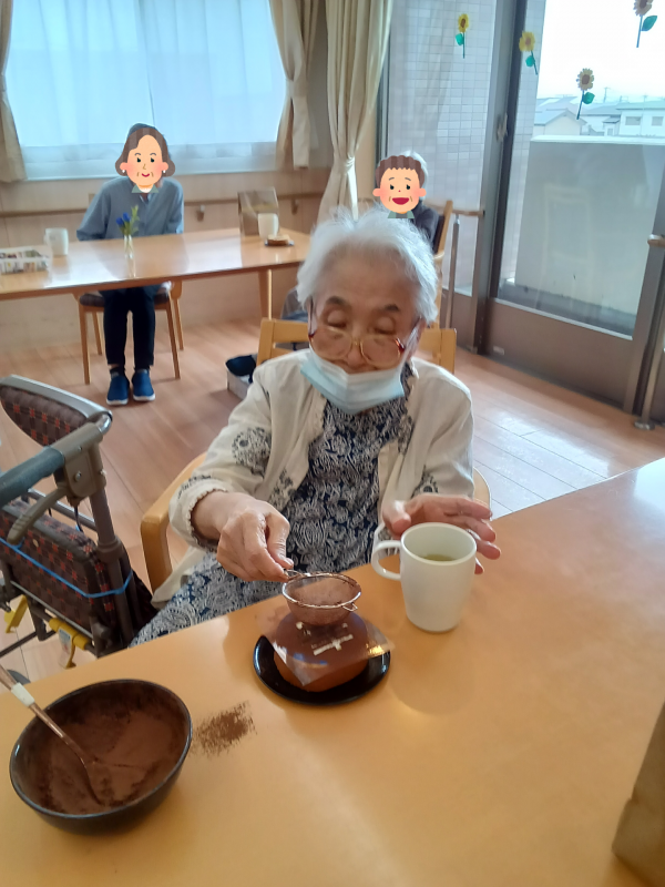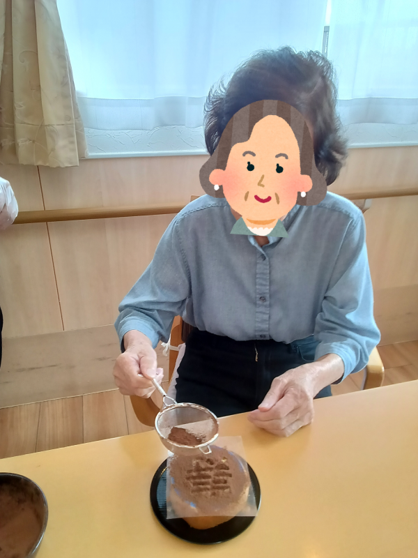 3階の皆様も自分でココアを振り「寿」を完成させていて、綺麗な「寿」ができた時の満面の笑みが印象的でした!