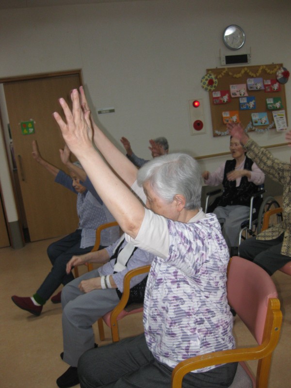 毎月様々なリモート体操が行われます。体操の時間をご利用者様は楽しみにしており、終わった後も「こんな感じの体操だったよ」と職員に教えてくれます。