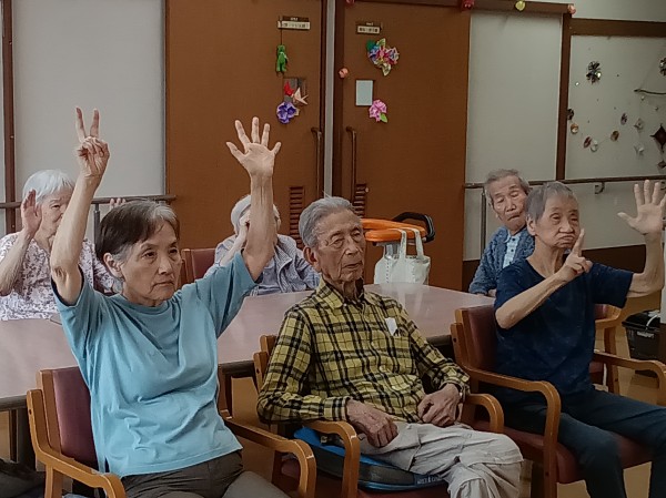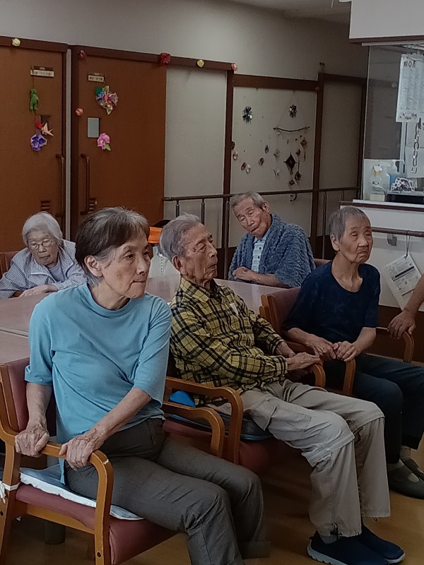本日はリモート体操の風景をお送りいたします(*'▽')皆様の頑張っている姿見ていると真剣さが伝わり本当に応援したくなります。実を言いますとご入居者様は1日2~3回ALSOK体操を行ってるせいか以外とスタッフより足が上がっていたり股関節も柔らかく一緒に参加するとビックリΣ(゚Д゚ いたします。(笑)