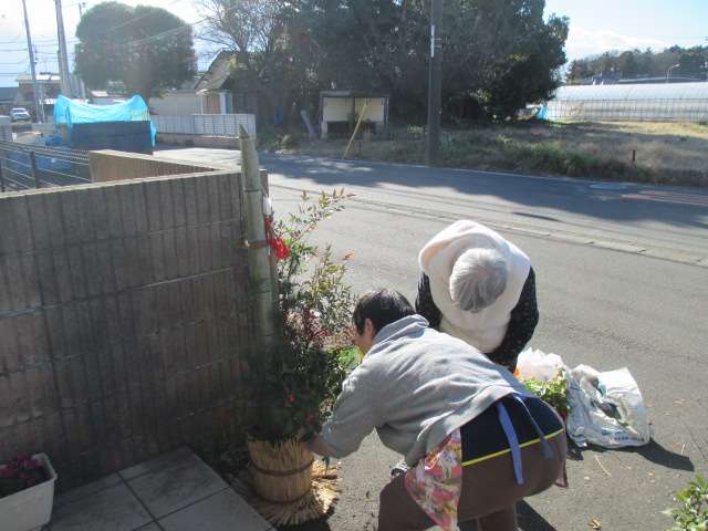 まずは、門松作りから。昨年同様、入居者様とスタッフにて門松を作りました。
