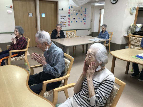 みなさんテレビに映っているインストラクターを見ながら真面目にお口を開けられていますね♪