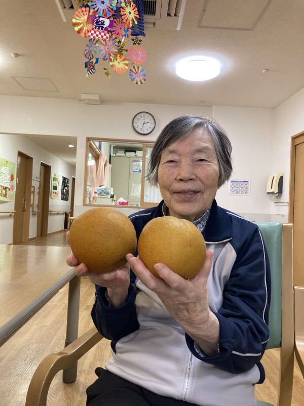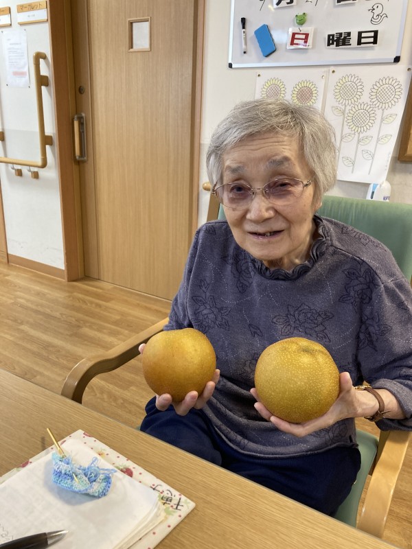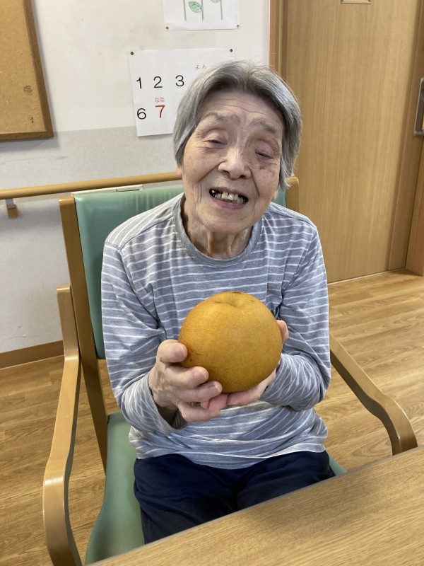 今日のおやつは秋の果物の梨を召し上がって頂きました。