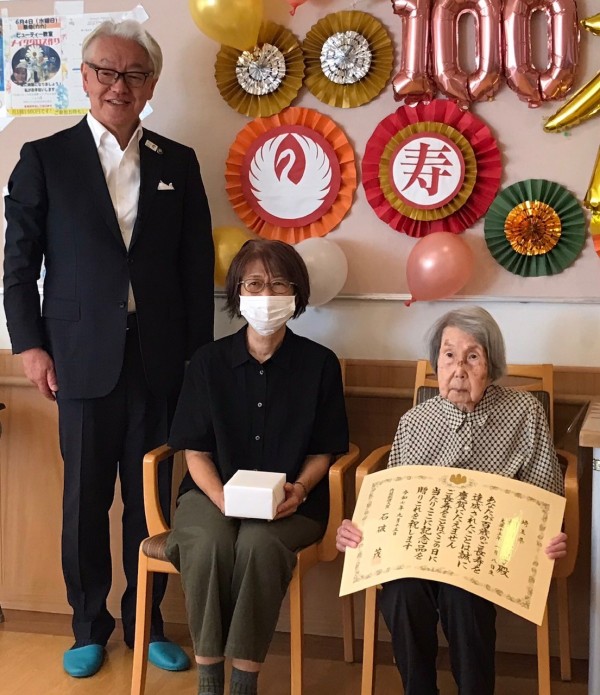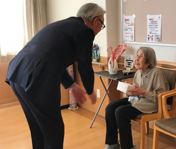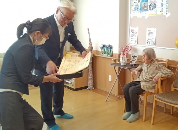 スタッフ「100歳を迎え市長さんから