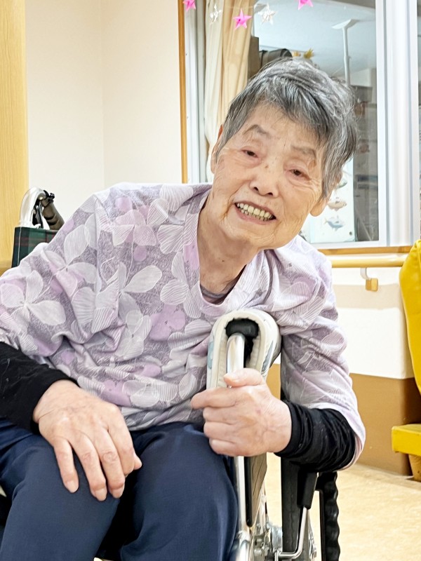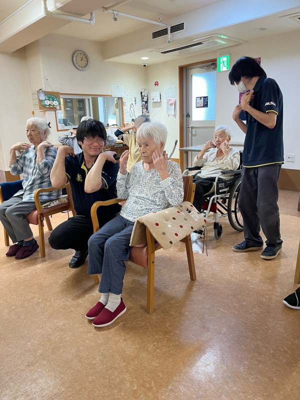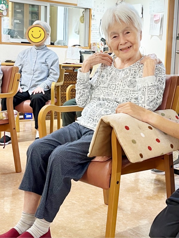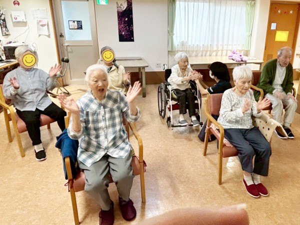 I様は職員の声掛けに合わせて参加。大きな声が響いていました。